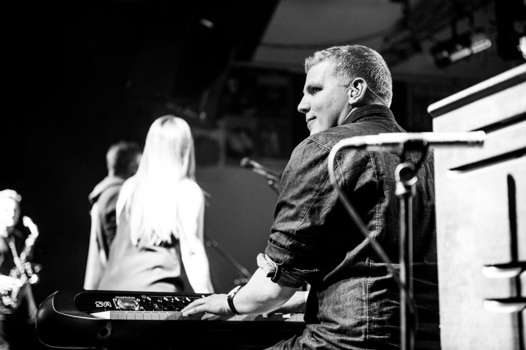 Stefan Eberhard mit dem Pianisten von "The Rolling Stones" Chuck Leavell. Stuttgart 2018